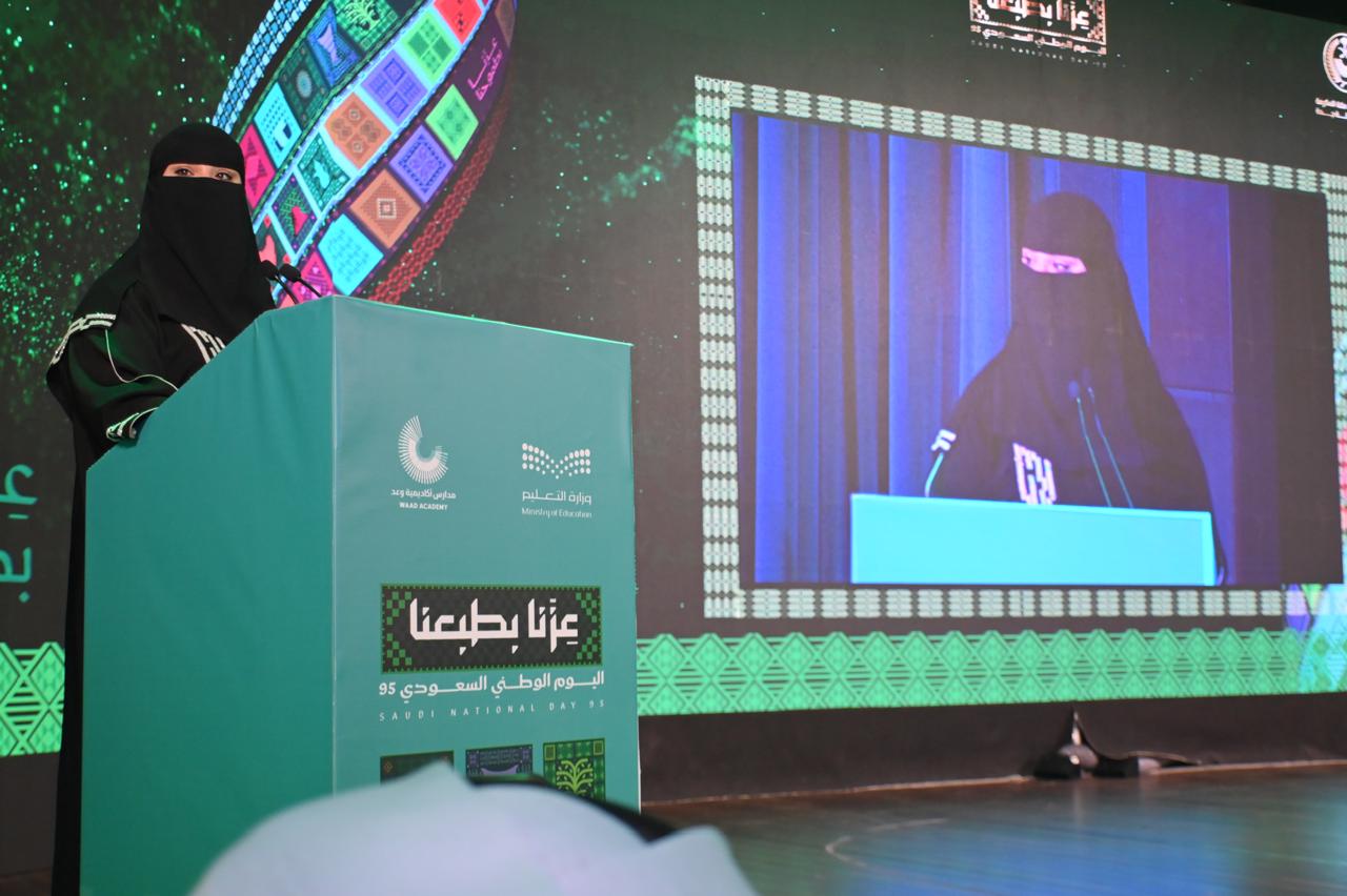 كما أبرزت في كلمتها الدور المحوري للتعليم في ترسيخ الهوية الوطنية وبناء شخصية الجيل، مشيرة إلى أن مدارس المملكة تُعد محاضن للوطنية ومنارات للعلم، حيث يضطلع المعلمون والمعلمات بدورهم الريادي كجنود للثقافة والفكر في ترسيخ قيمة أن حب الوطن يُترجم بالفعل والعطاء والولاء الصادق.